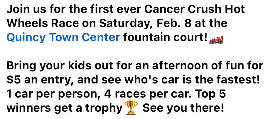 Sign up required: https://www.signupgenius.com/go/20F084BAFAC2CA1FE3-54297070-hotwheels#/